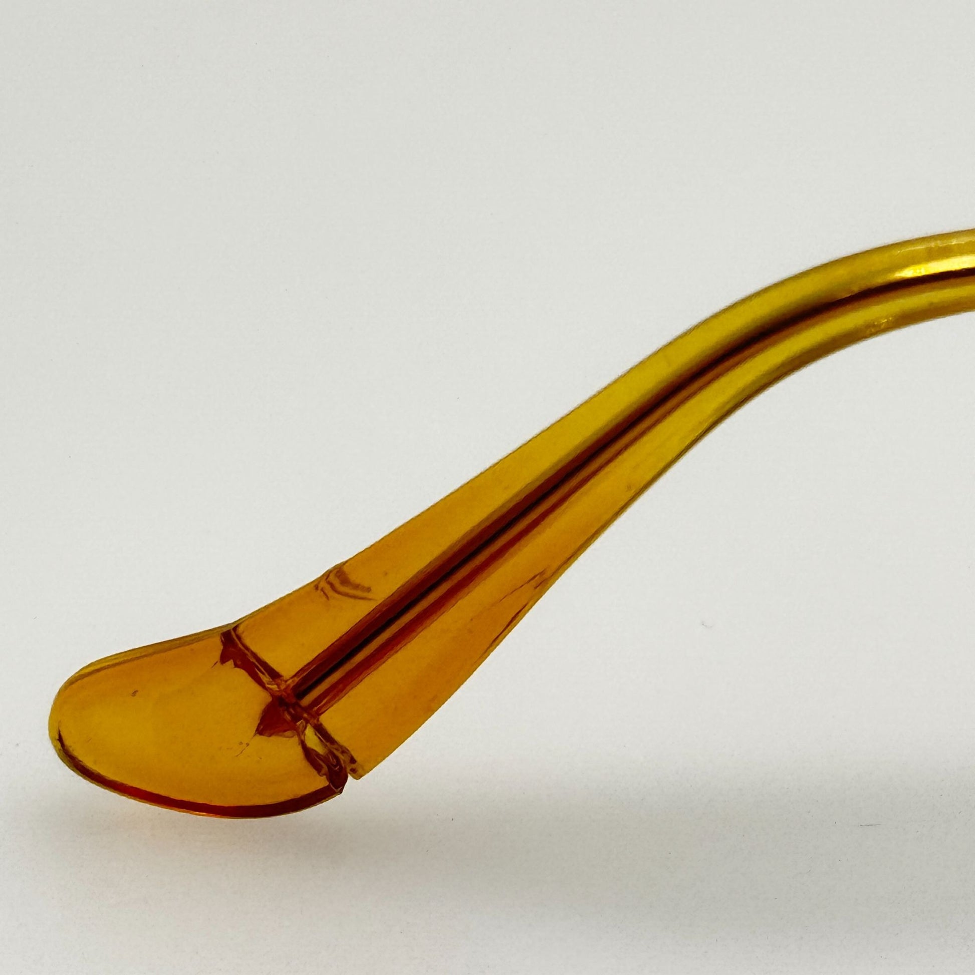 When wearing the glasses the right arm temple tip has a split. See pictures